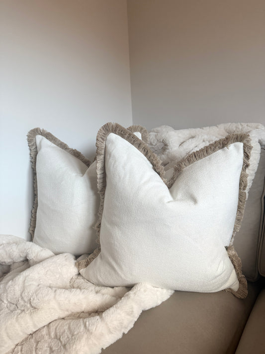 Hugo White & Beige Fringed Large Cushion