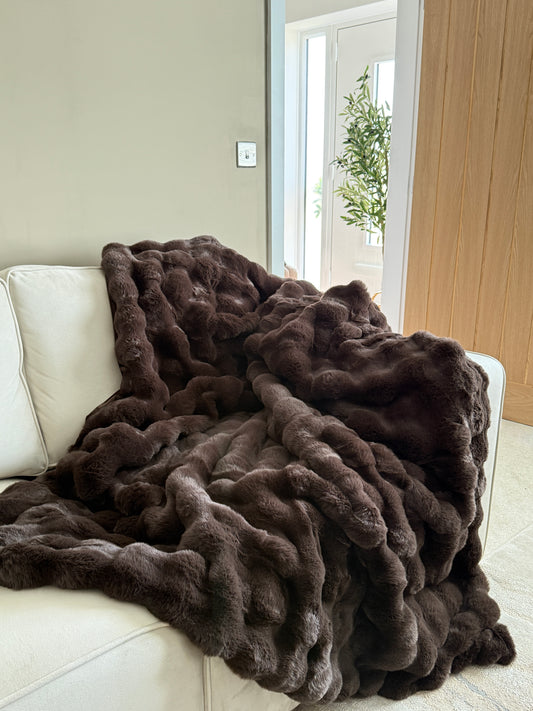 Bermondsey Cream & Brown Super Thick Luxury Faux Fur Throw