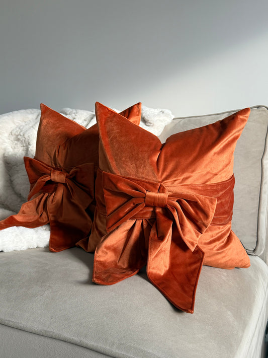 Rust Orange Tied Up Bow Cushion