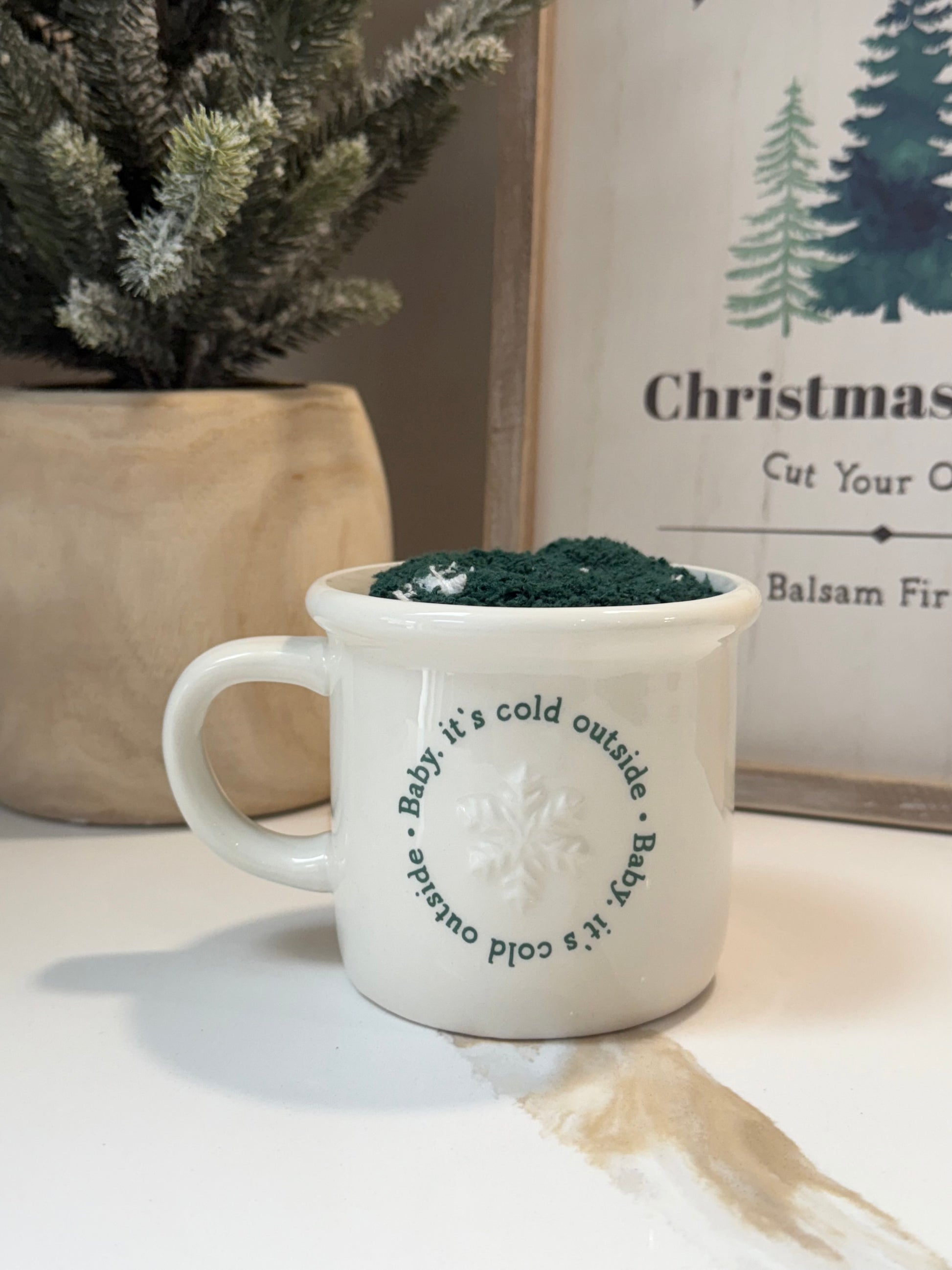 This charming set features a festive ceramic mug with a delicate snowflake design and the phrase “Baby It’s Cold Outside”, ideal for sipping hot chocolate, tea, or mulled wine by the fire. Paired with a snuggly pair of soft polyester socks, it’s a thoughtful way to bring comfort and cheer to cold winter nights.