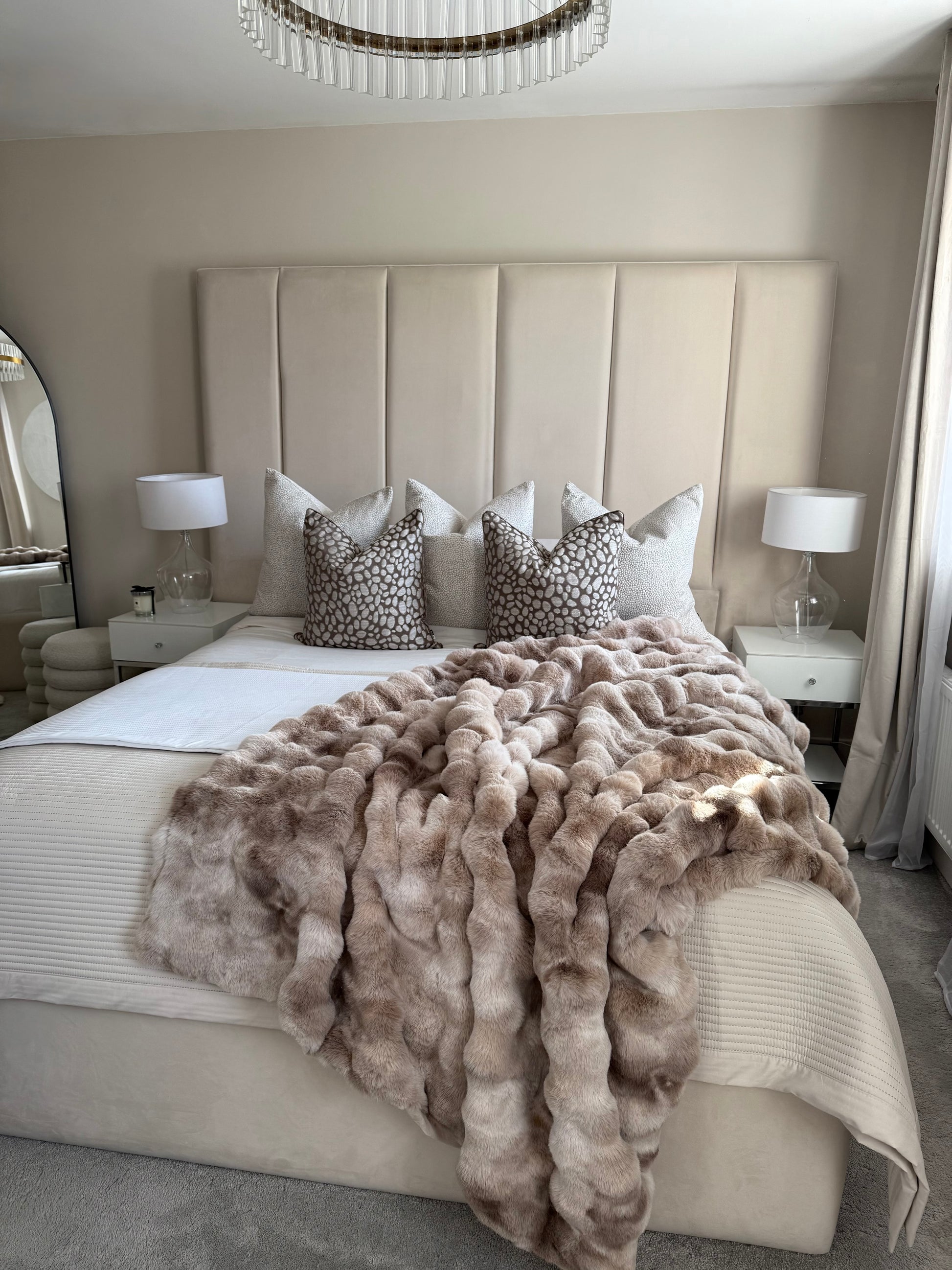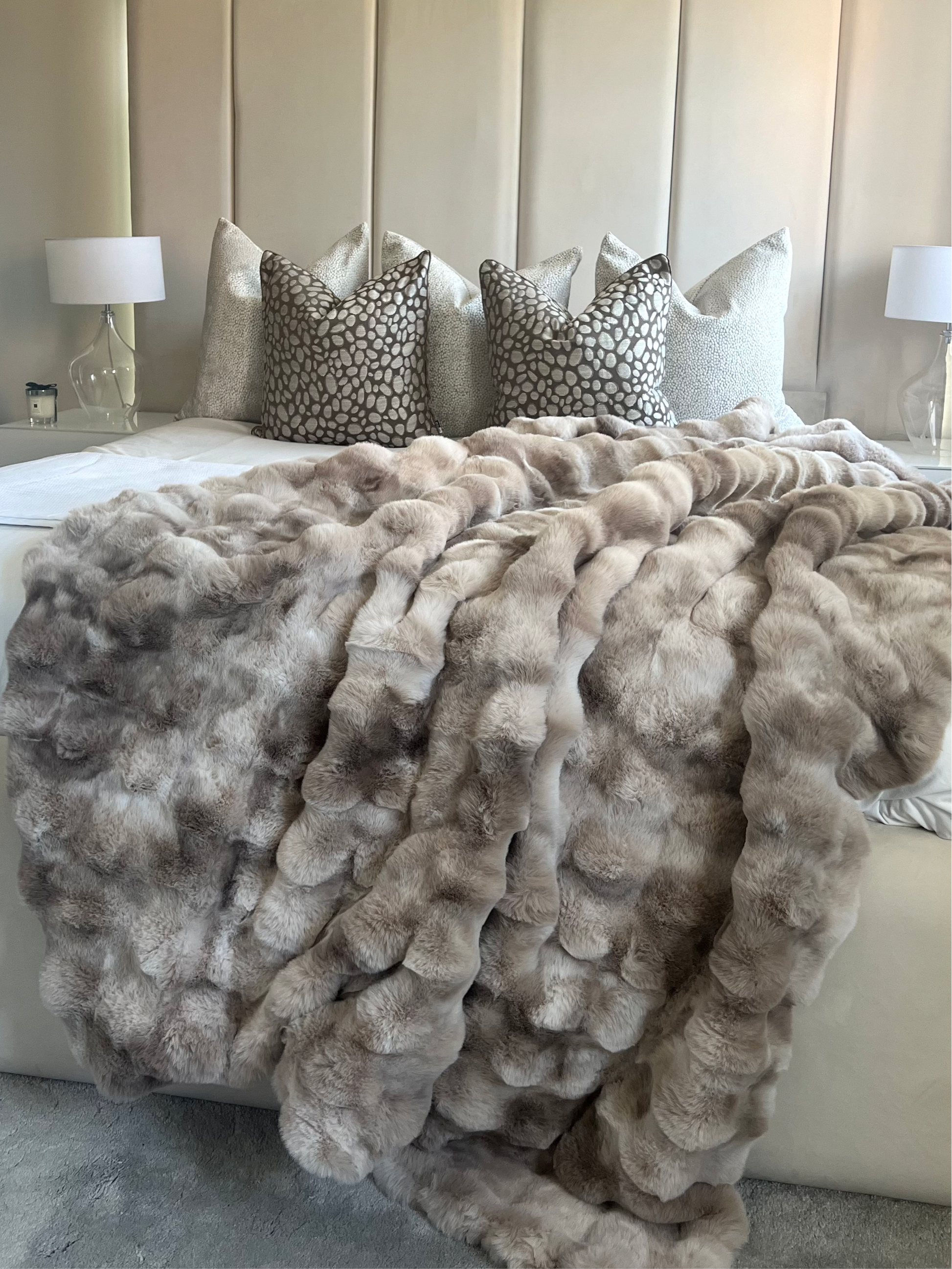 Bermondsey Cream & Brown Super Thick Luxury Faux Fur Throw