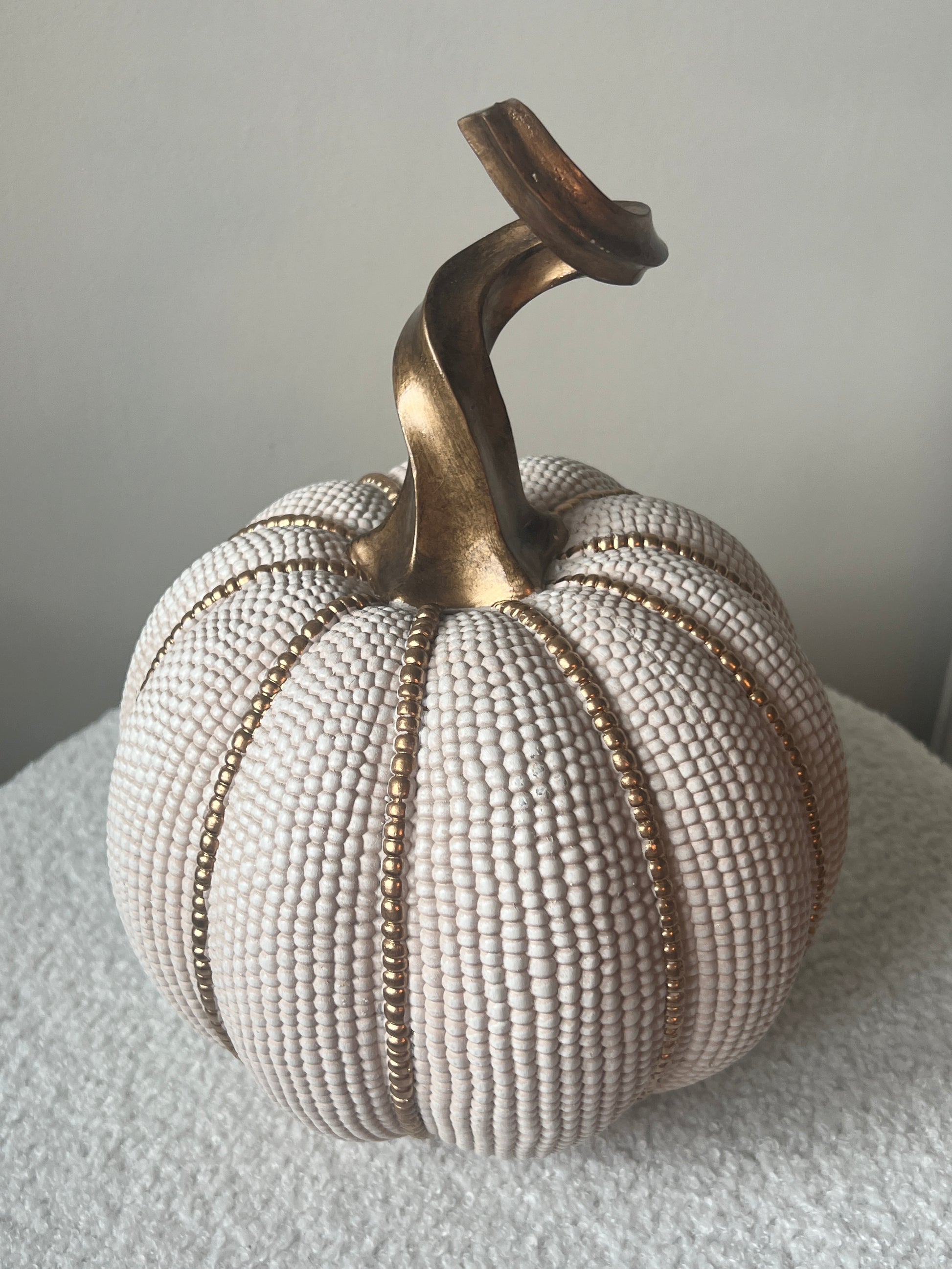 White & Gold Beaded Pumpkin Large