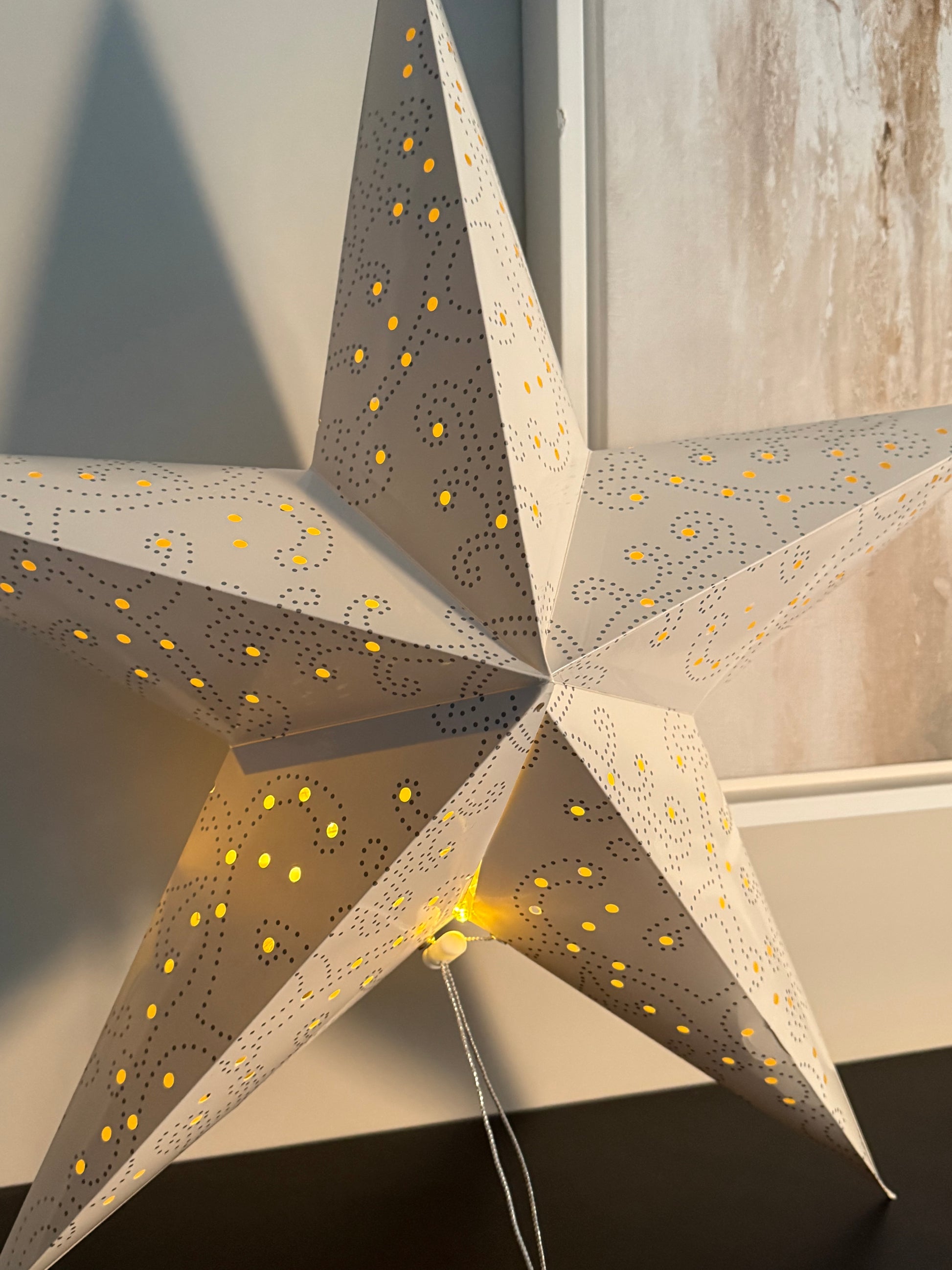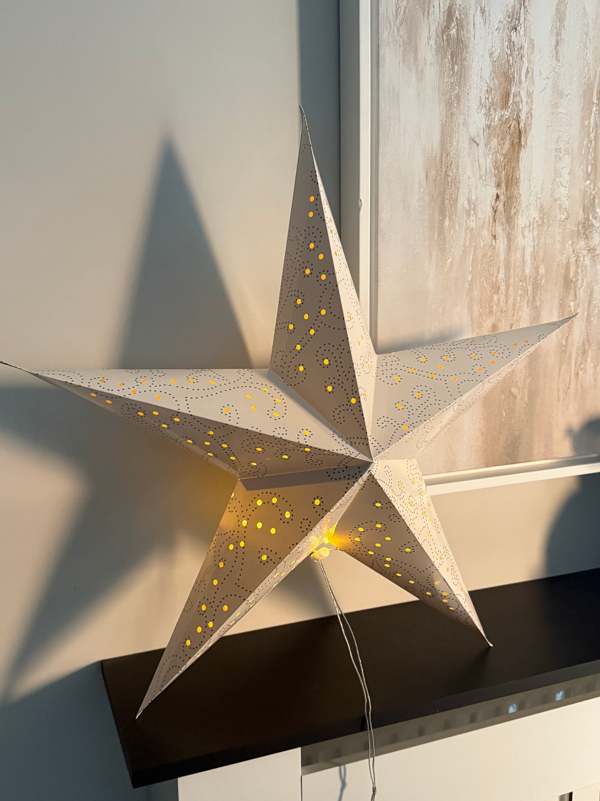 Illuminate your home with our LED Hanging Paper Star Decoration. This 60cm star features an ornate design that allows light to shine through, creating a magical display. Perfect for any occasion, add a touch of whimsy to any room with this stunning decoration.