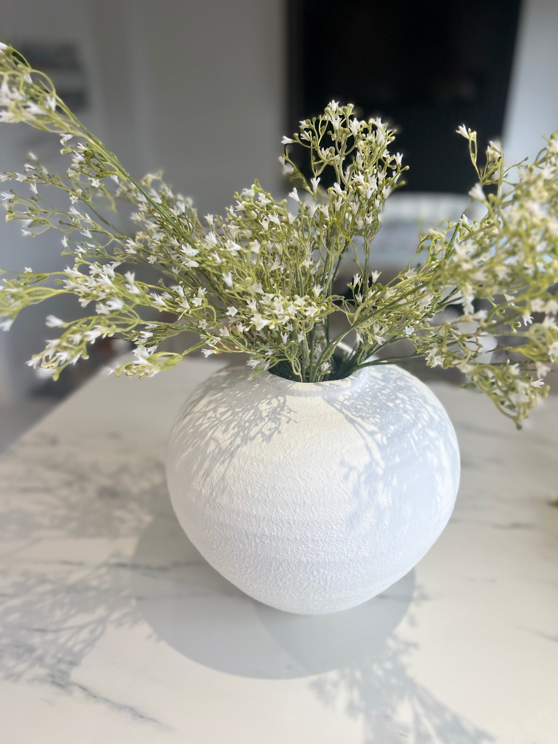 Our elegant ceramic vase is sure to complement any room with its matte white finish. Crafted with meticulous attention to detail, this vase exudes timeless elegance, making it a captivating addition to any space.
