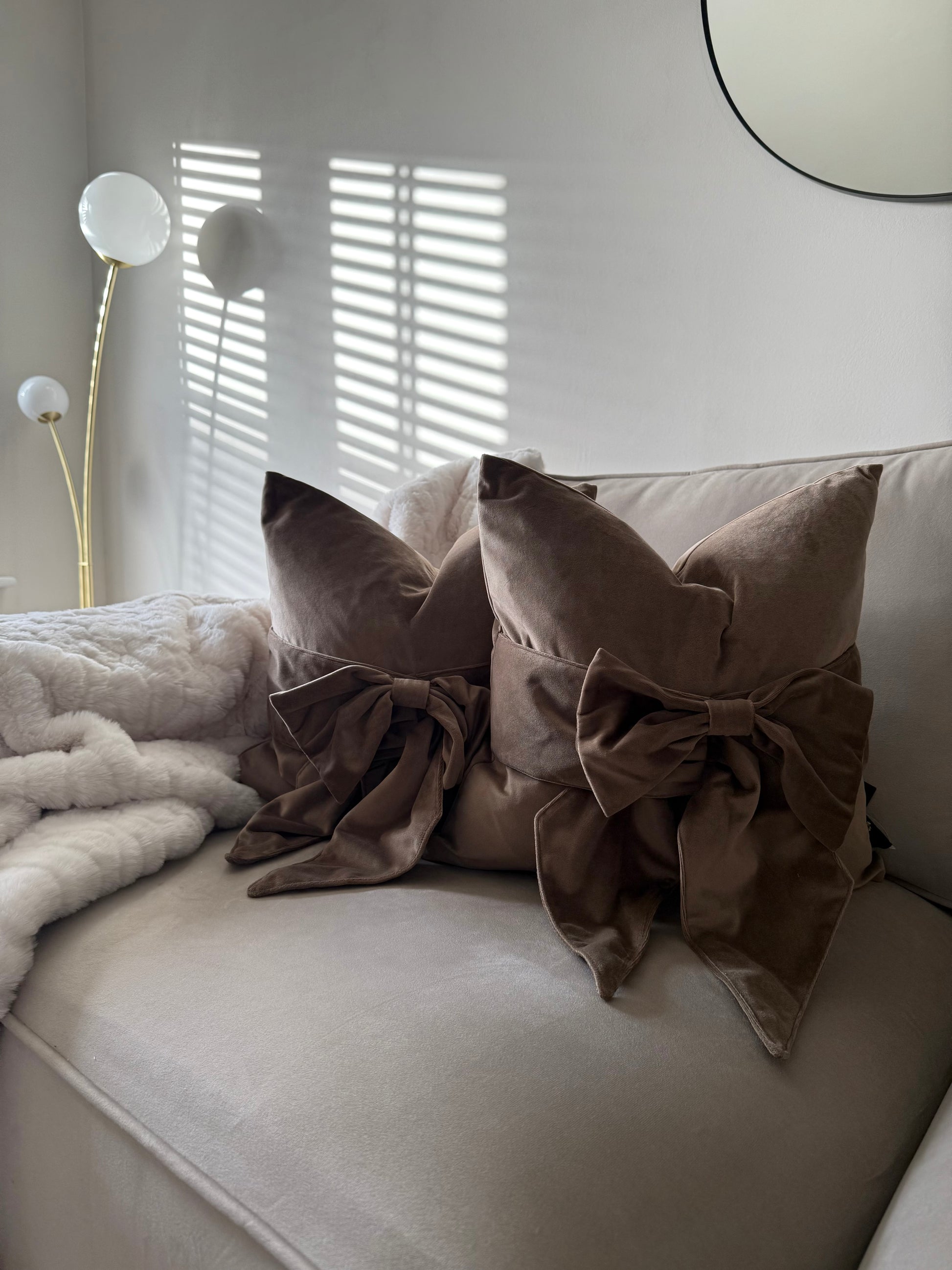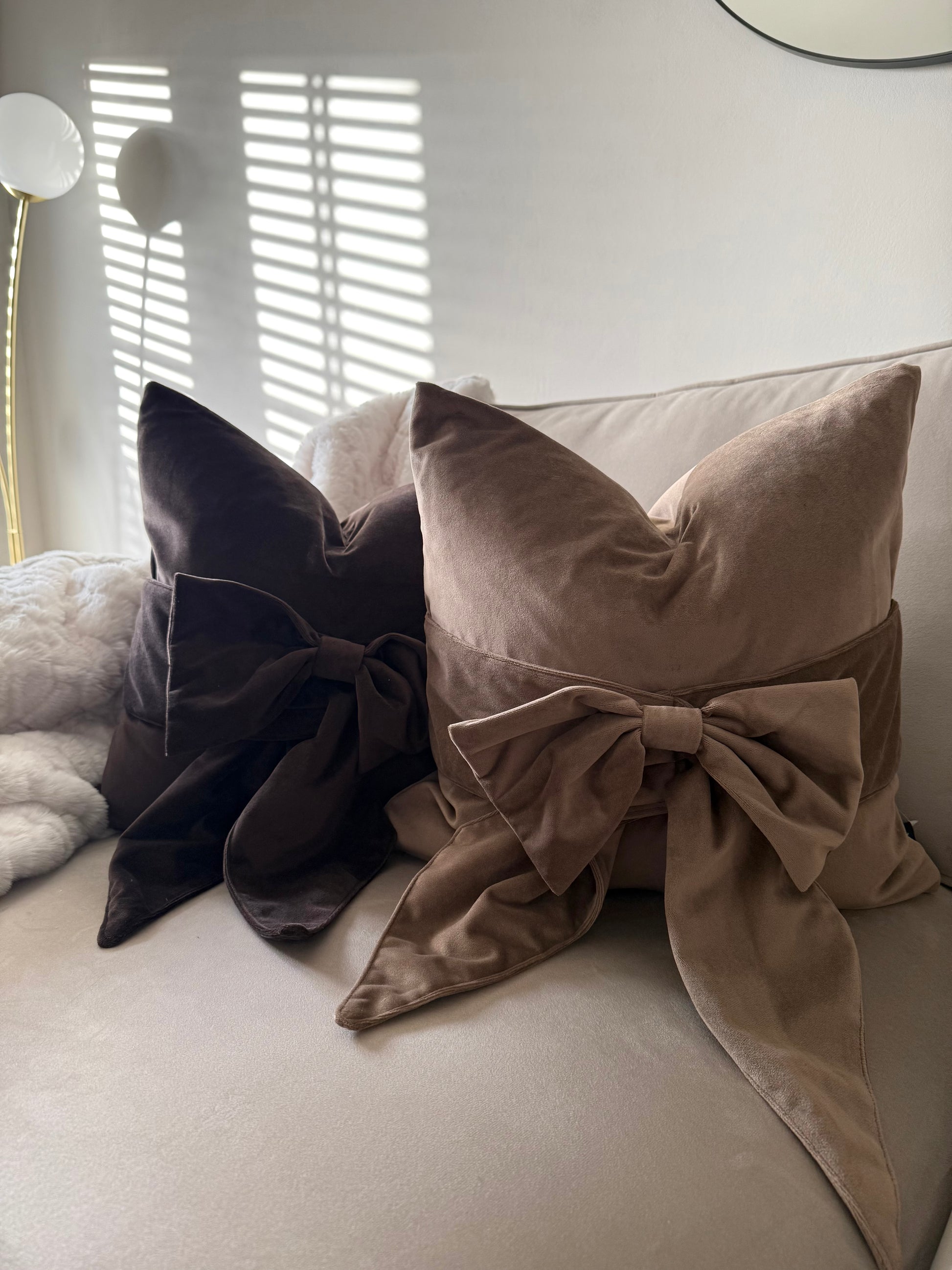 Taupe Tied Up Bow Cushion