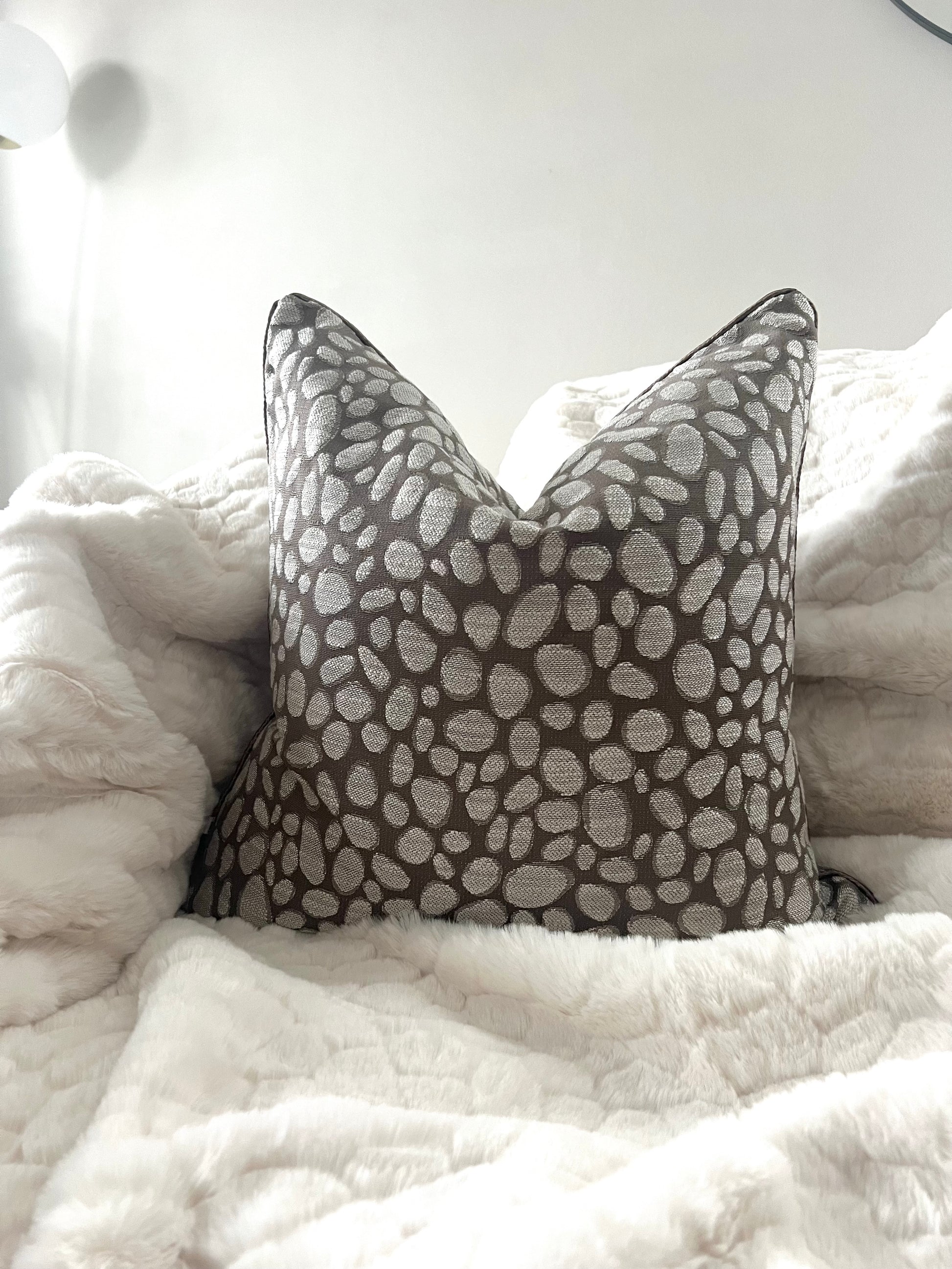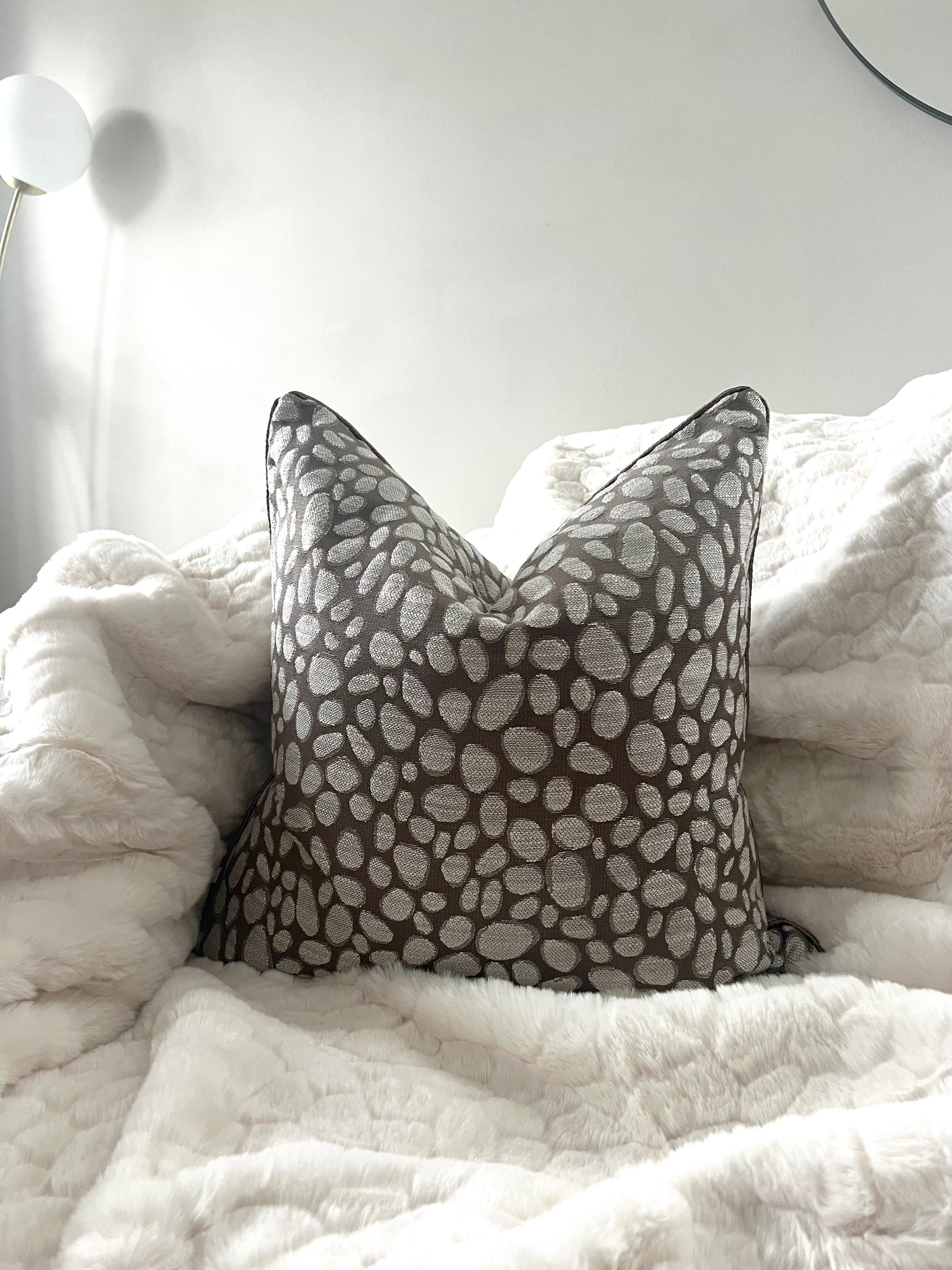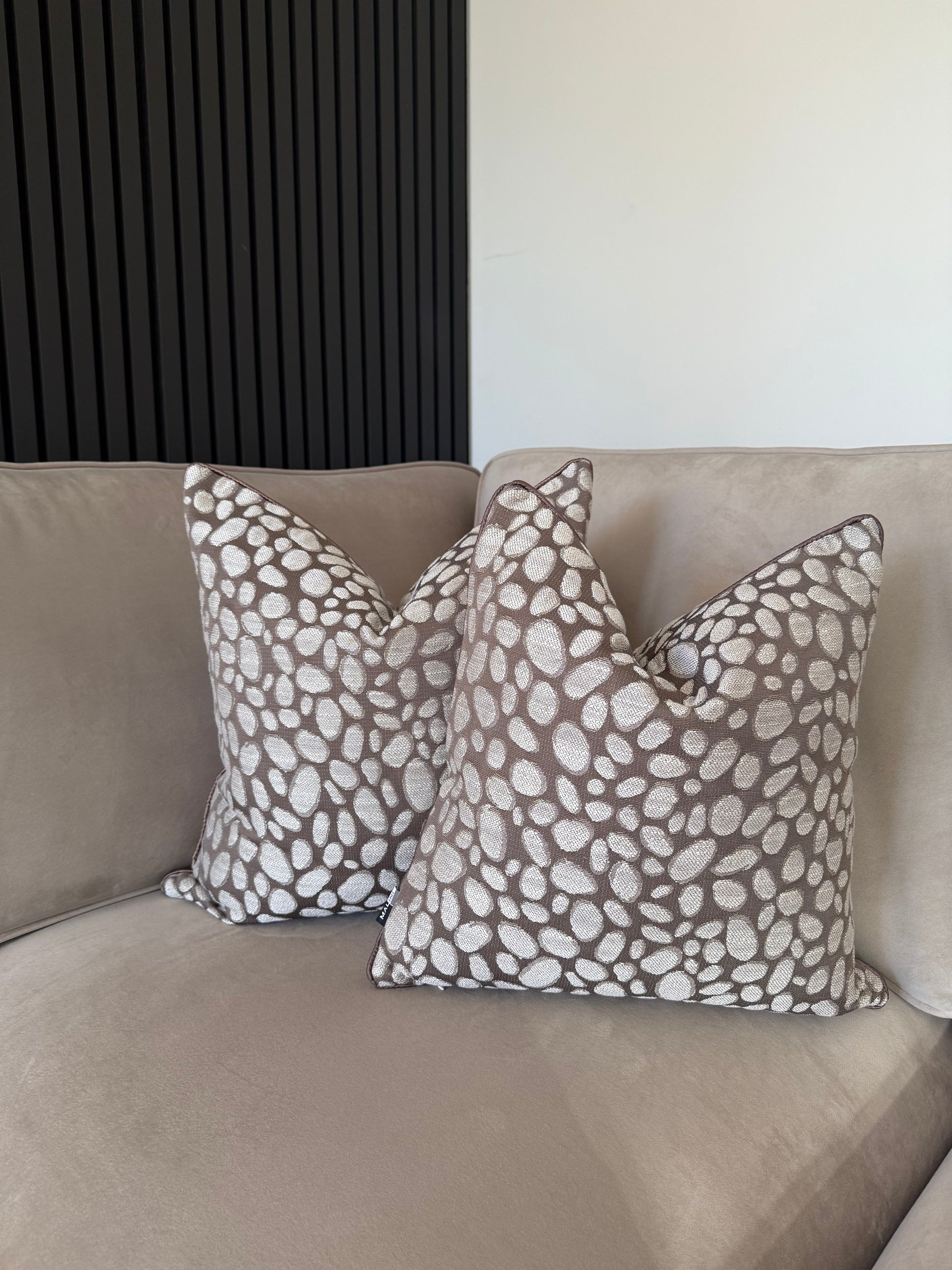 Enhance the comfort and style of your living space with our Pebbles large taupe cushion. Expertly crafted on a jacquard loom, the taupe pebble design brings a touch of natural beauty to any room. Finished with tonal piping, this cushion is a must-have for your home.