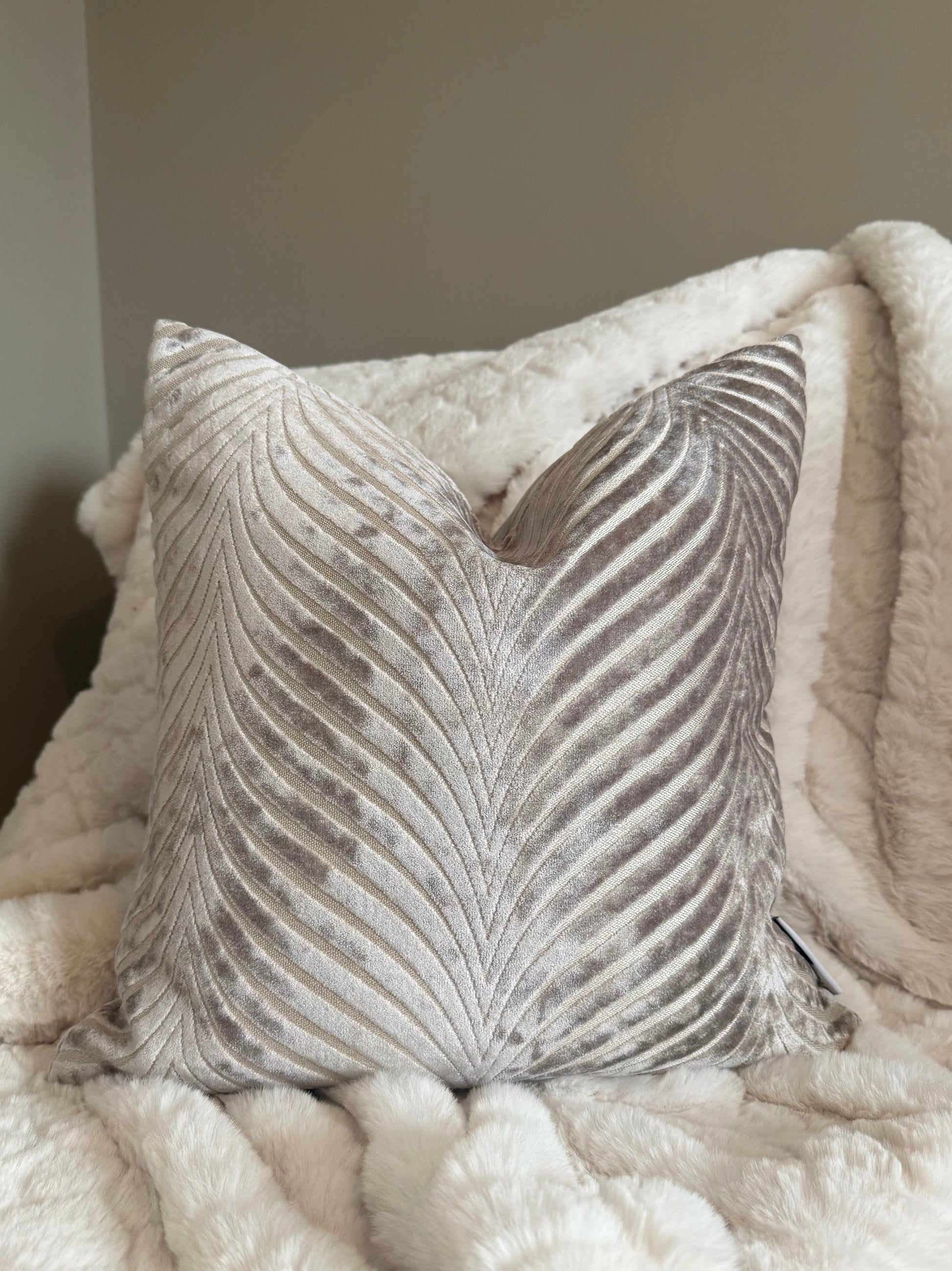 The Rada Taupe Cushion brings soft sophistication and effortless luxury to any living space. Crafted from sumptuous velvet in a refined taupe hue, it features a beautiful raised fan design that adds depth, texture, and a subtle sheen, perfect for elevating both classic and contemporary interiors.