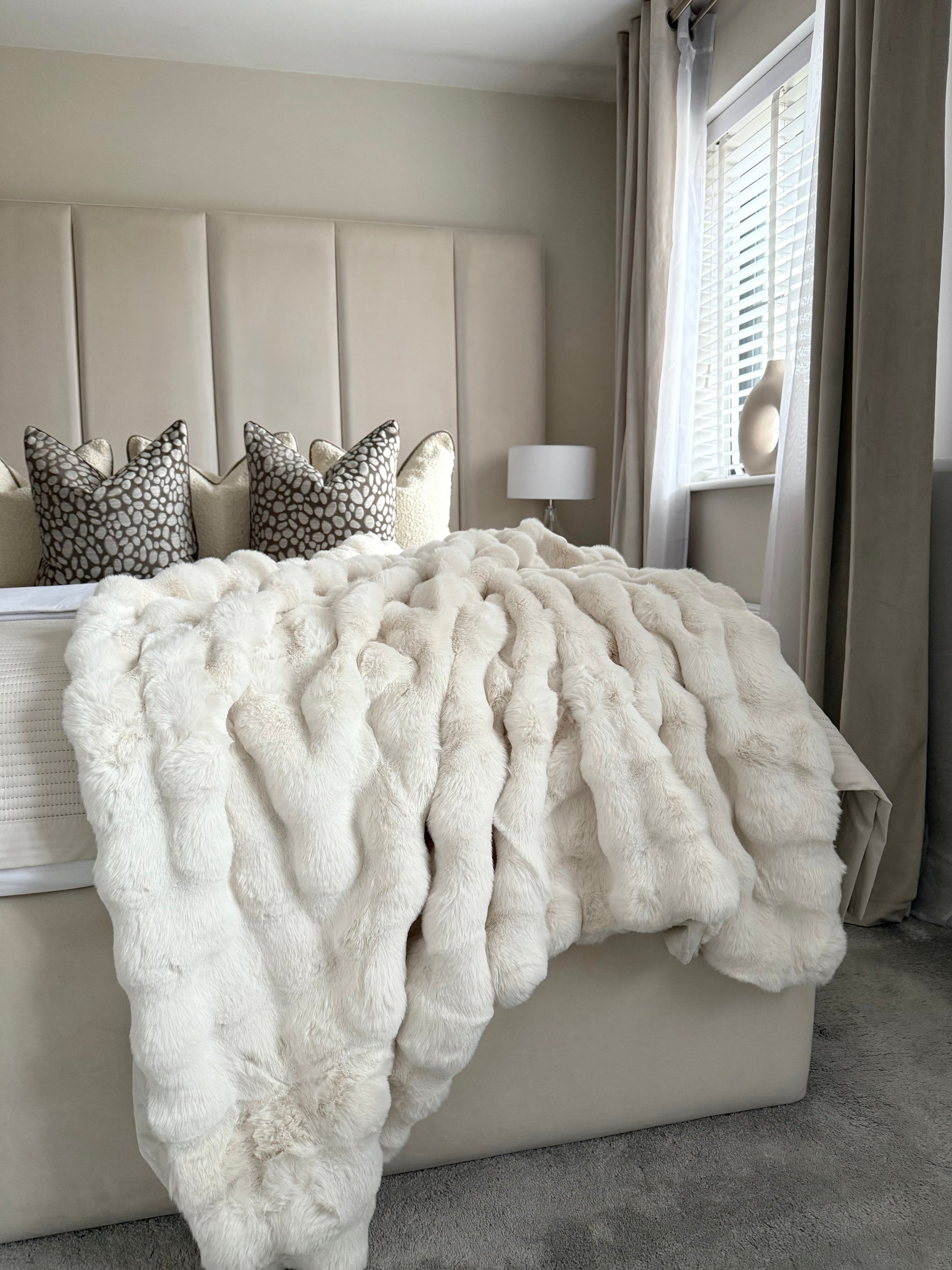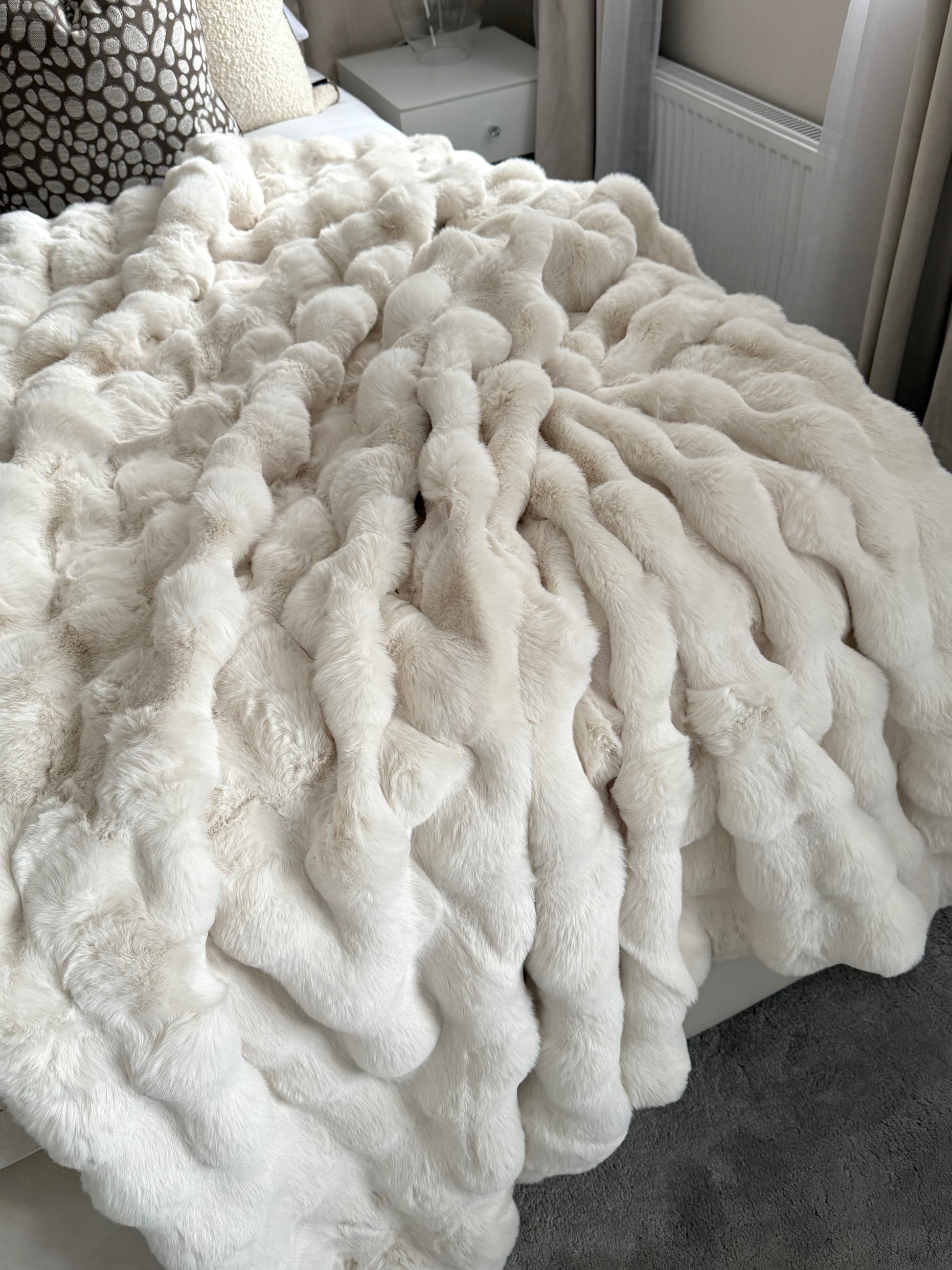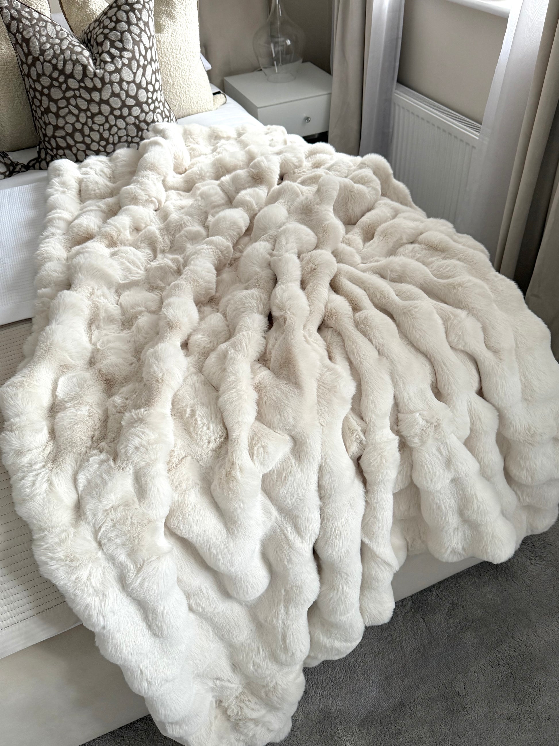 Enhance the elegance of your home with the Raffles natural faux fur throw. Its stunning ruffled texture design and neutral tones will effortlessly complement any interior decor.