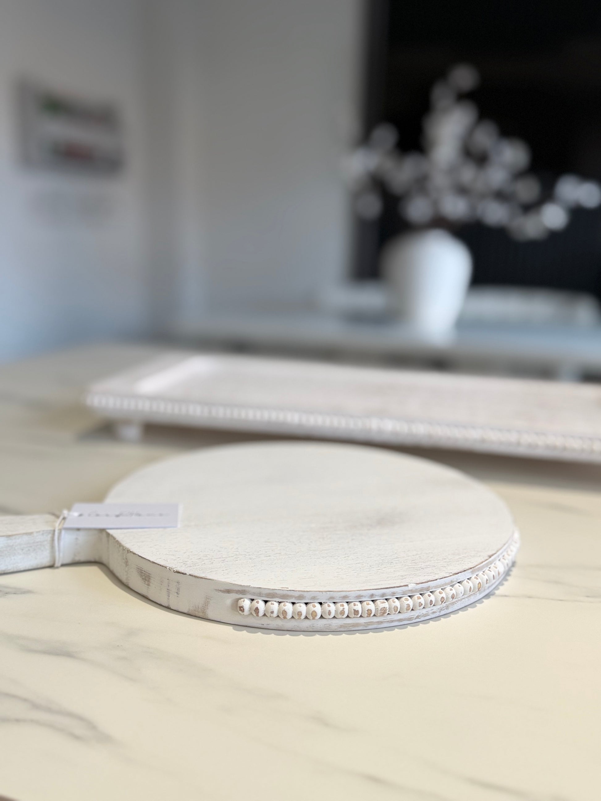 Crafted from beautiful and durable mango wood, this beaded chopping board is a must-have for any kitchen. It's stylish and functional design adds a touch of elegance to your cooking routine. Perfect for use as a serving board or for ornament purposes.