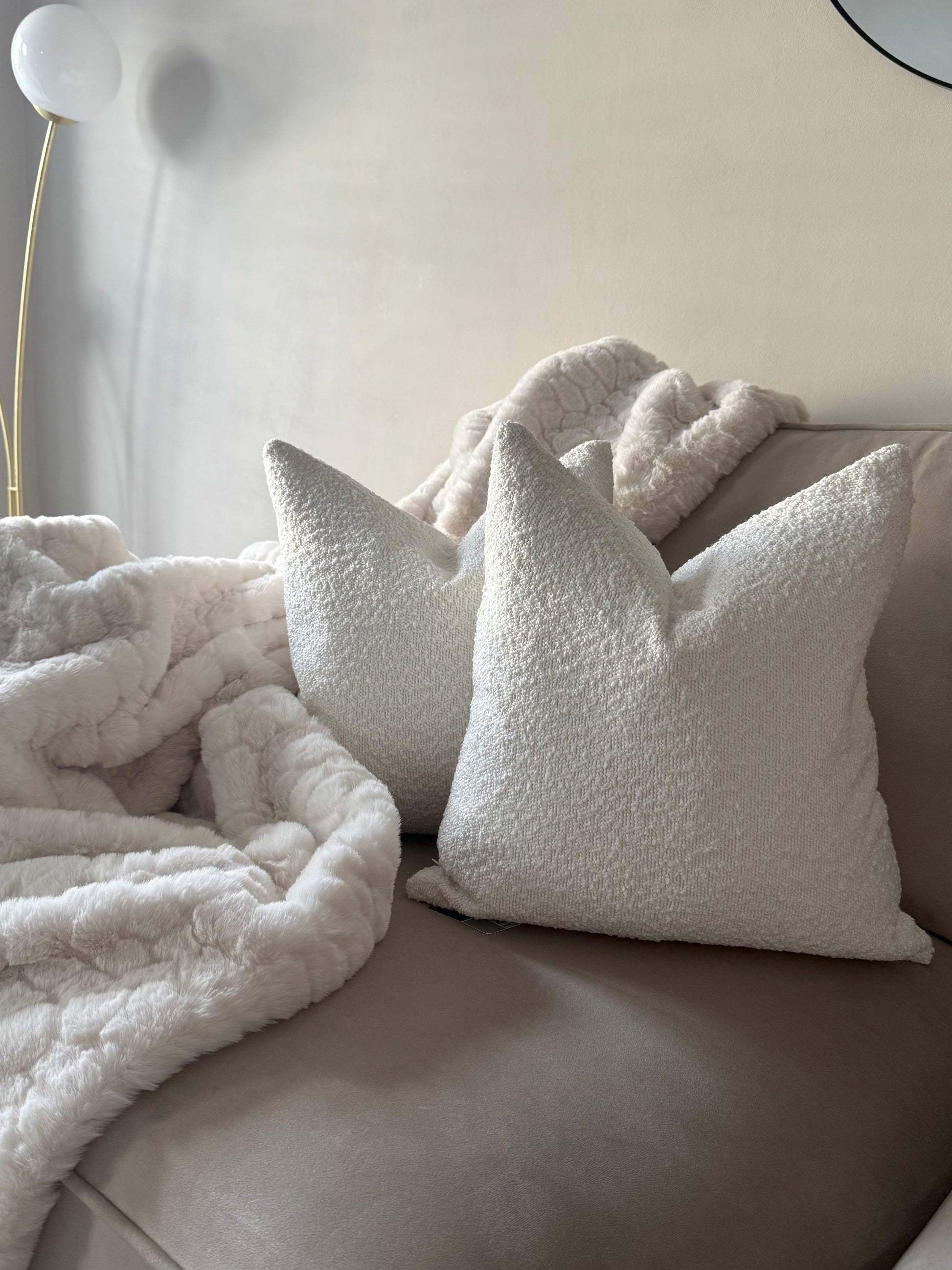 Presenting the Rubble ivory bouclé cushion, a high-quality, versatile addition to your home decor. Made from luxurious ivory bouclé fabric, this cushion adds texture and elegance to any space. With its subtle and sophisticated design, it is sure to elevate the style of your living room, bedroom, or snug. Don't settle for ordinary cushions, invest in the Rubble bouclé cushion for a touch of refined beauty in your interior design.