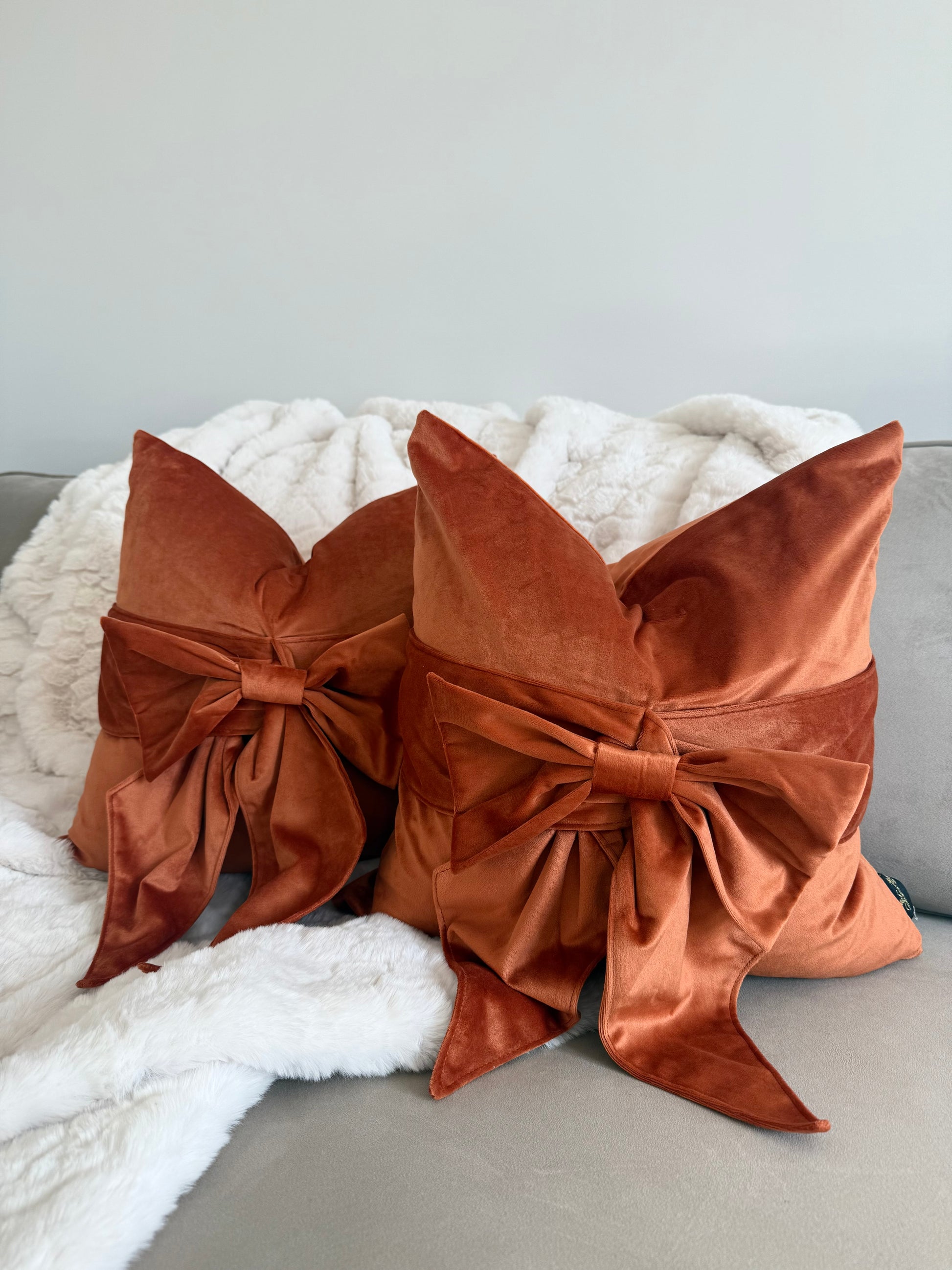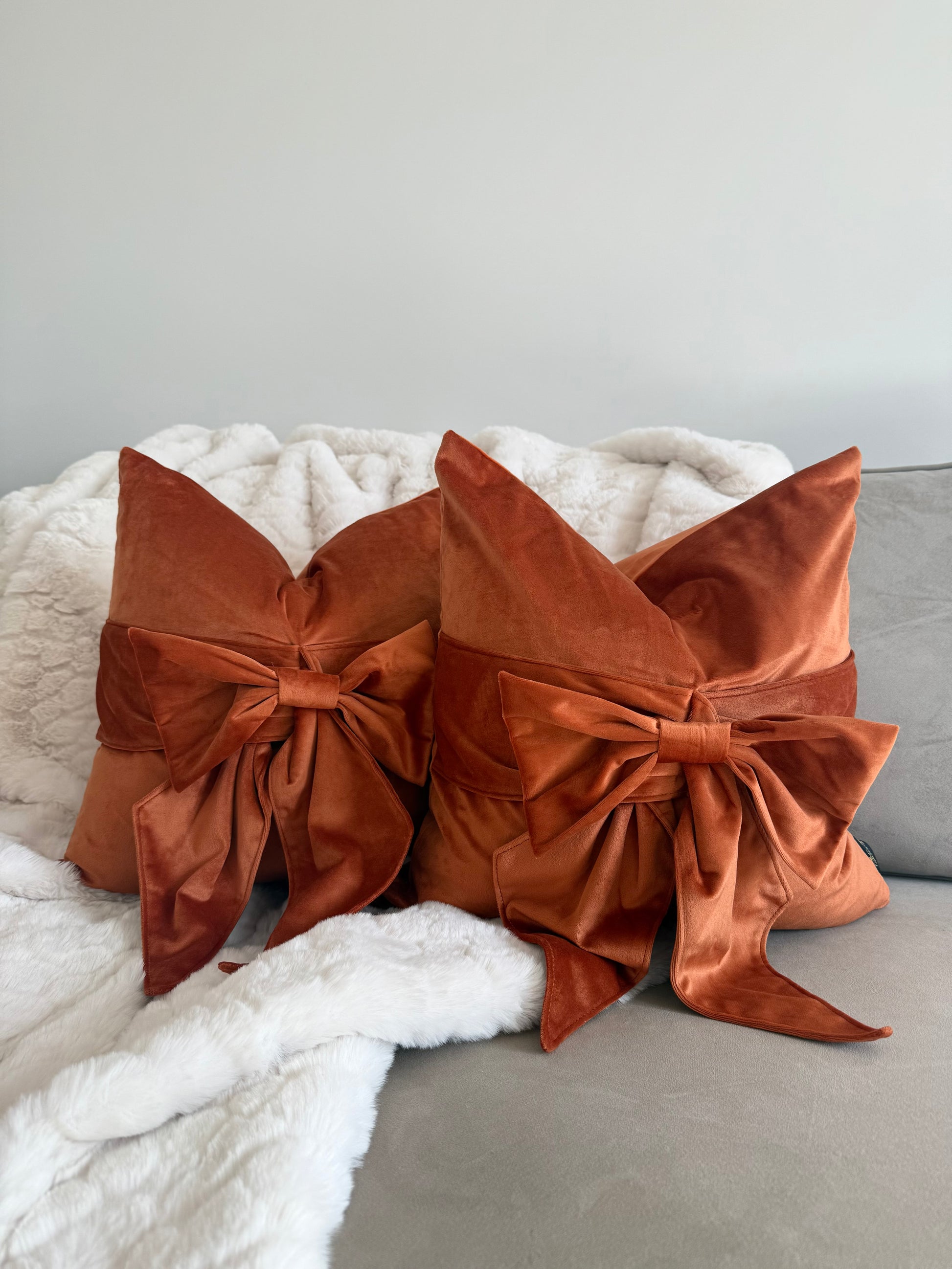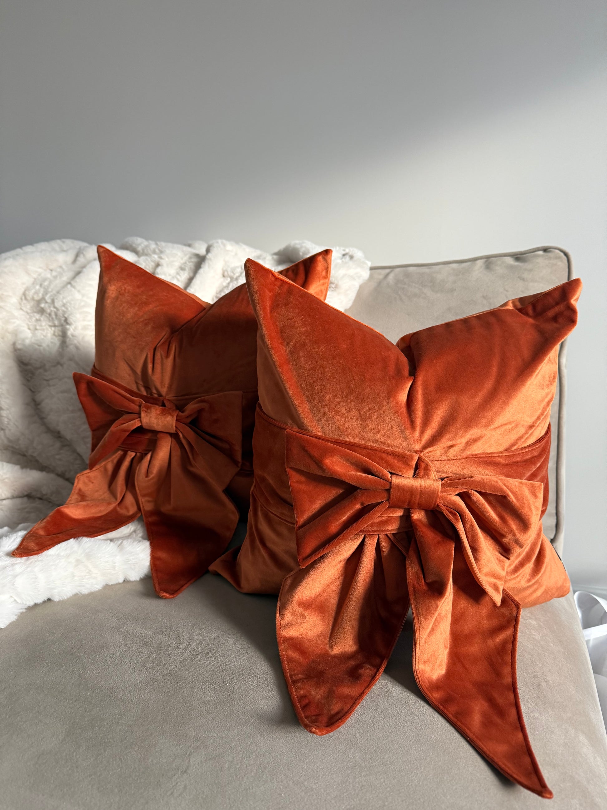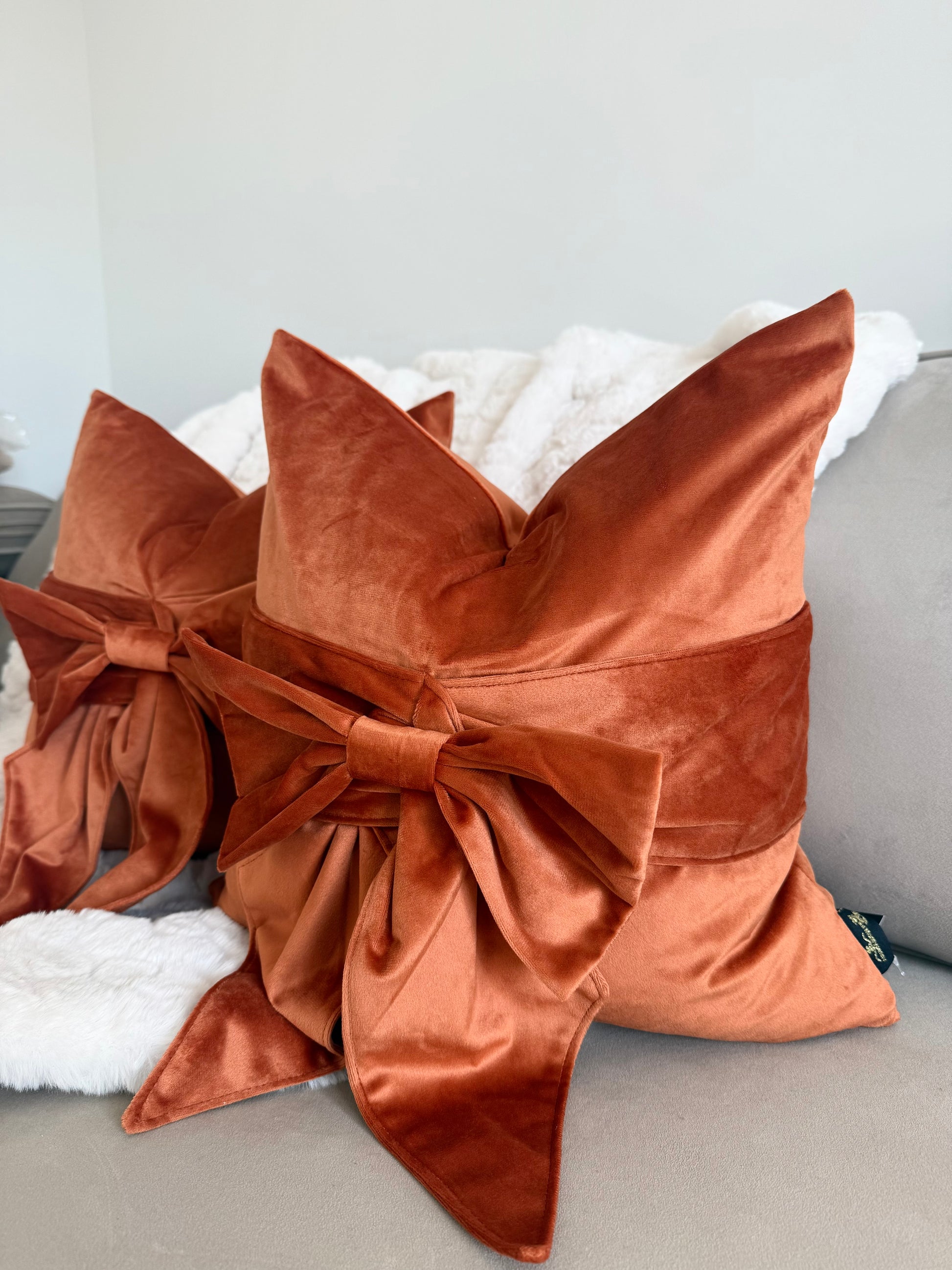 Introducing the Tied Up rust Orange bow cushion, designed by renowned designer Paul Moneypenny. This velvet cushion features a standout bow detail, adding a touch of charm to any room. Elevate your space with this gorgeous statement piece.